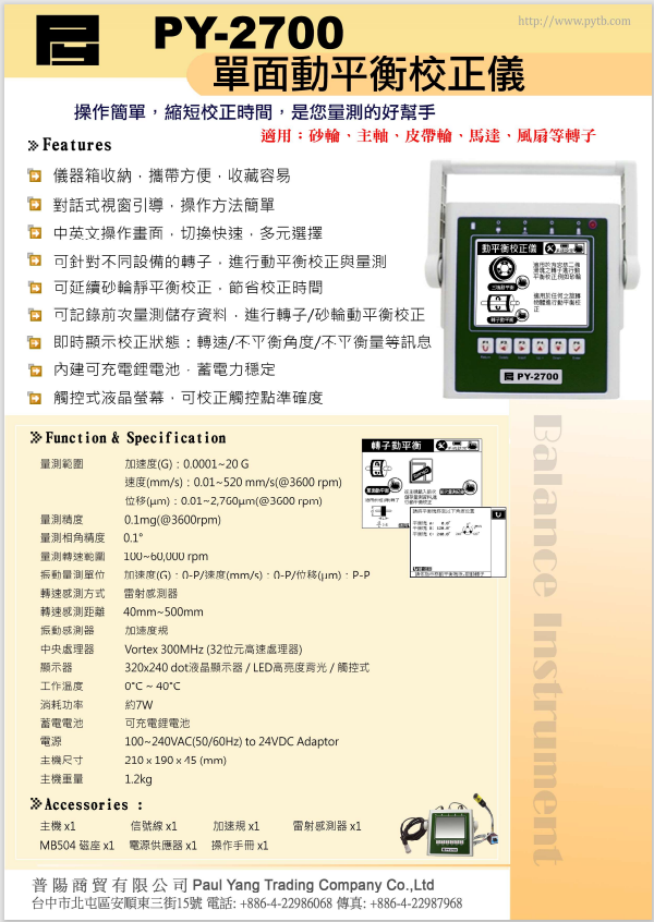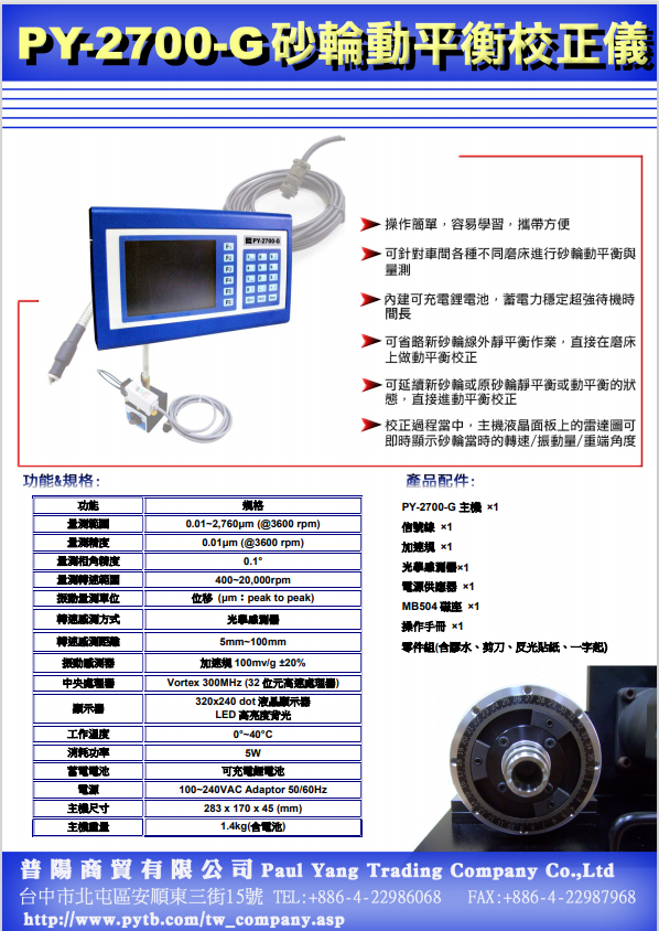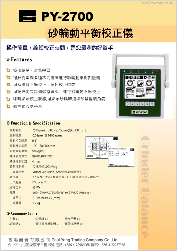PY-2700-G(舊版) 砂輪動平衡校正儀