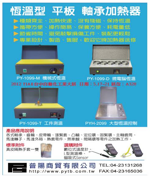 本公司這次參展的主要產品:軸承加熱器、振動儀器、主軸跑合、超微霧潤滑。